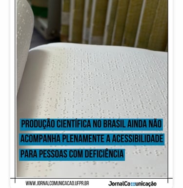 Reportagem web sobre a acessibilidade para pessoas com defiiciência auditiva ou visual na produção científica que escrevi para o Jornal Comunicação UFPR.